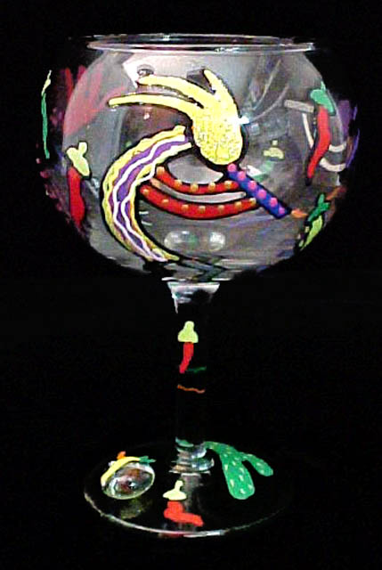 Chilies & Kokopelli Design - Hand Painted - Grande Goblet - 17.5 oz.