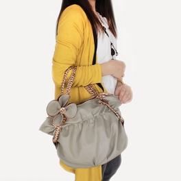 [Refined Princess] Grey Flower Double Handle Leatherette Satchel Bag Handbag Purse Styling