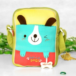 [Lively Dog] Embroidered Applique Fabric Art Shoulder Bag / Swingpack / Travel Bag (8.1*6.5*2.4)