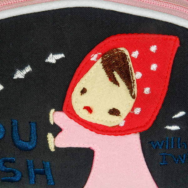 [Smiling Girl] Embroidered Applique Fabric Art Wrist Wallet / Coin Purse / Wrist Pack (5.9*3.9)
