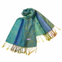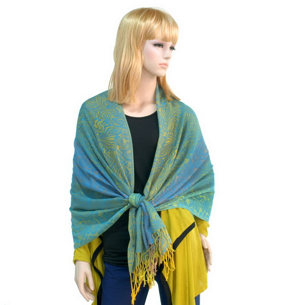 Pa-a54-3 Sea Blue Special Flowers Pattern Elegant Extra Soft Woven Pashmina/Shawl/Scarf