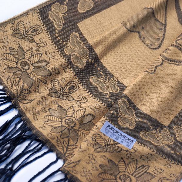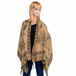 Pa-a66-2 Khaki Big Butterfly & Flower Elegant exquisitely Soft Tassel Ends Pashmina/Shawl/Scarf