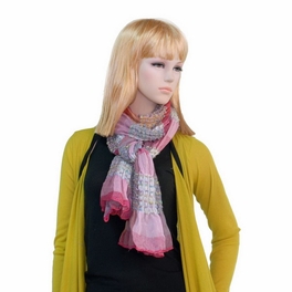 Pa-a87 Pink Checks Arcadian Style Cute Silky Soft Woven Tassel Ends Pashmina/Shawl/Scarf