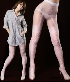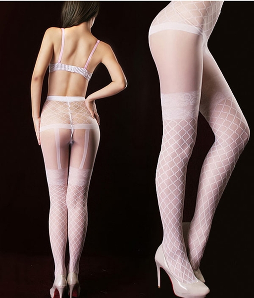 Blancho SE-2103-WHITE Sheer Wire Pattern Lace Stockcing Pantyhose - White - Medium