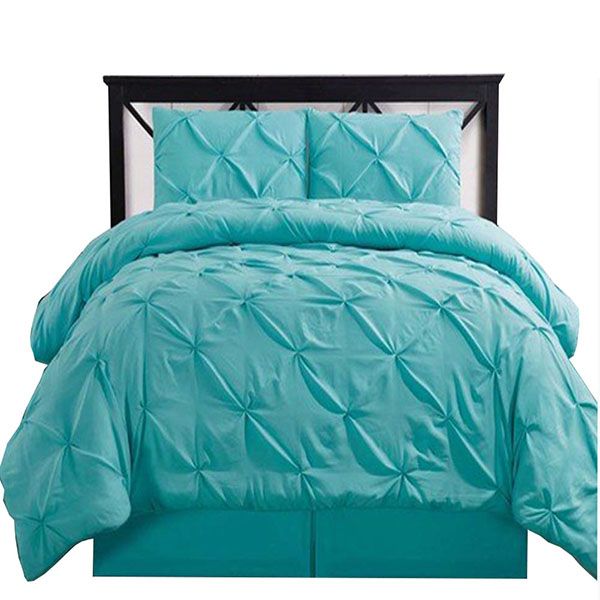 Full Size aqua blue Oxford Double Needle Luxury Soft Pinch Pleated Comforter Set