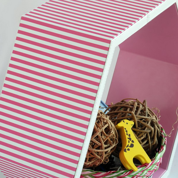 Trista - [Pink Beige Stripe] Hexagon Leather Wall Shelf / Bookshelf / Floating Shelf (Set of 3)